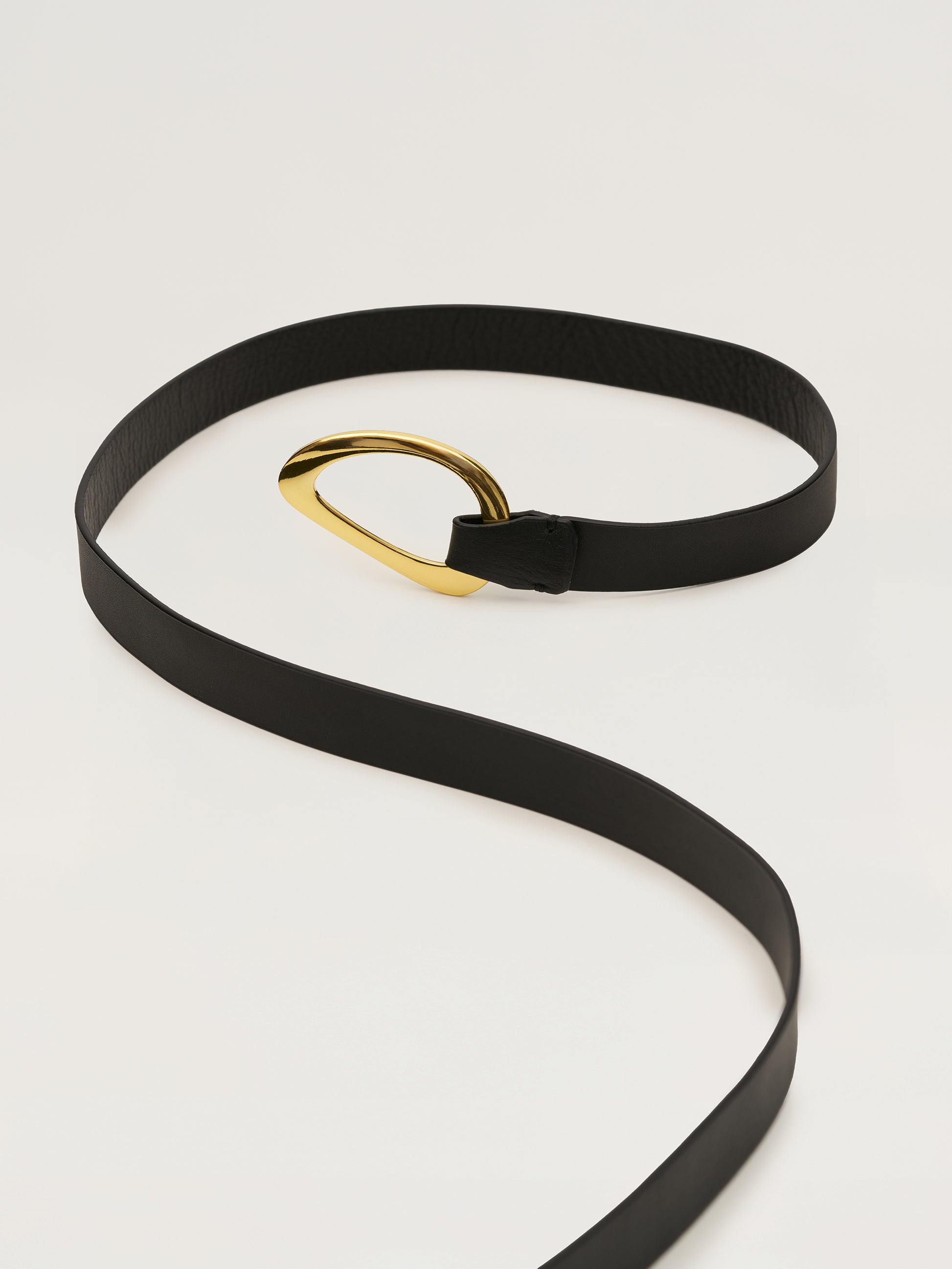 This handcrafted leather belt features a statement organic gold-tone buckle and is designed to be knotted at the waist for a fluid, adjustable fit. Wear it to cinch a flowy dress or add structure to your favourite pair of mom jeans, it’s an effortless way to elevate everyday dressing.